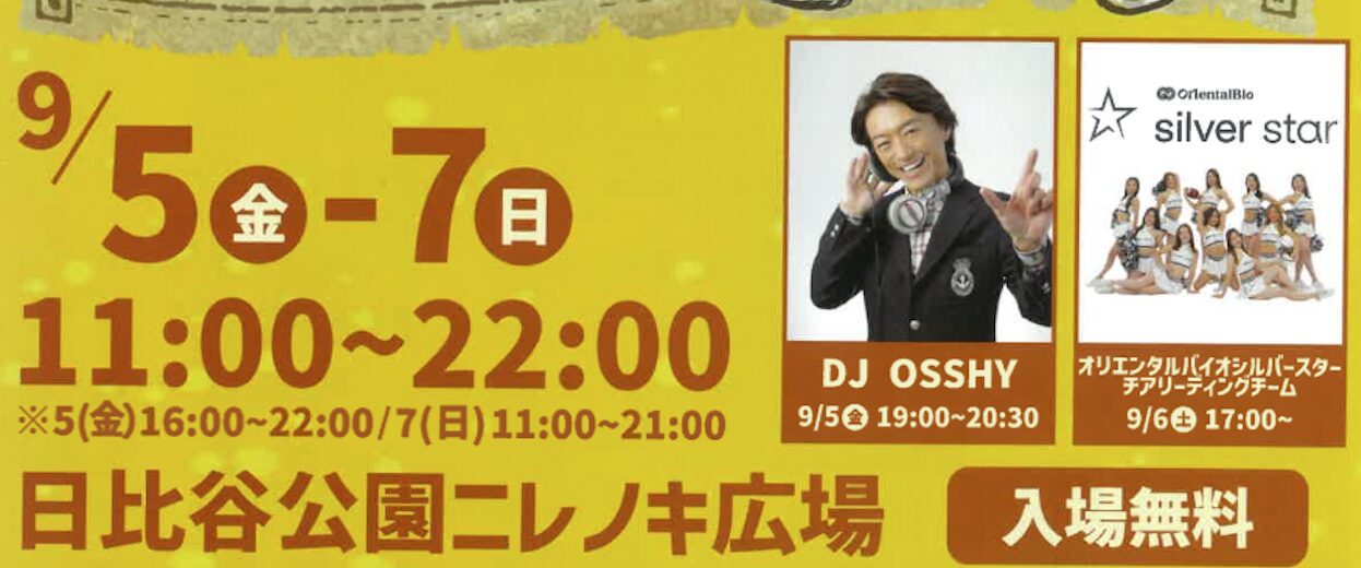 世界や日本のクラフトビール・各国グルメなどが楽しめるイベントです。また、スペシャルステージ は、「80′s ディスコ伝道師」DJ OSSHY、チアリーディングのオリエンタルバイオシルバースターが登場します。もちろん、カップルや友達同士でも楽しめます!