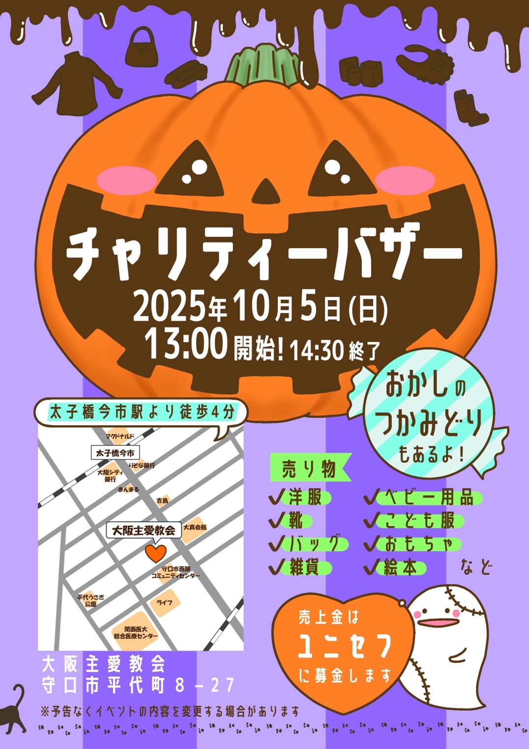 - 10/5(日)【チャリティーバザー】大好評につき今年で3回目となりました!
