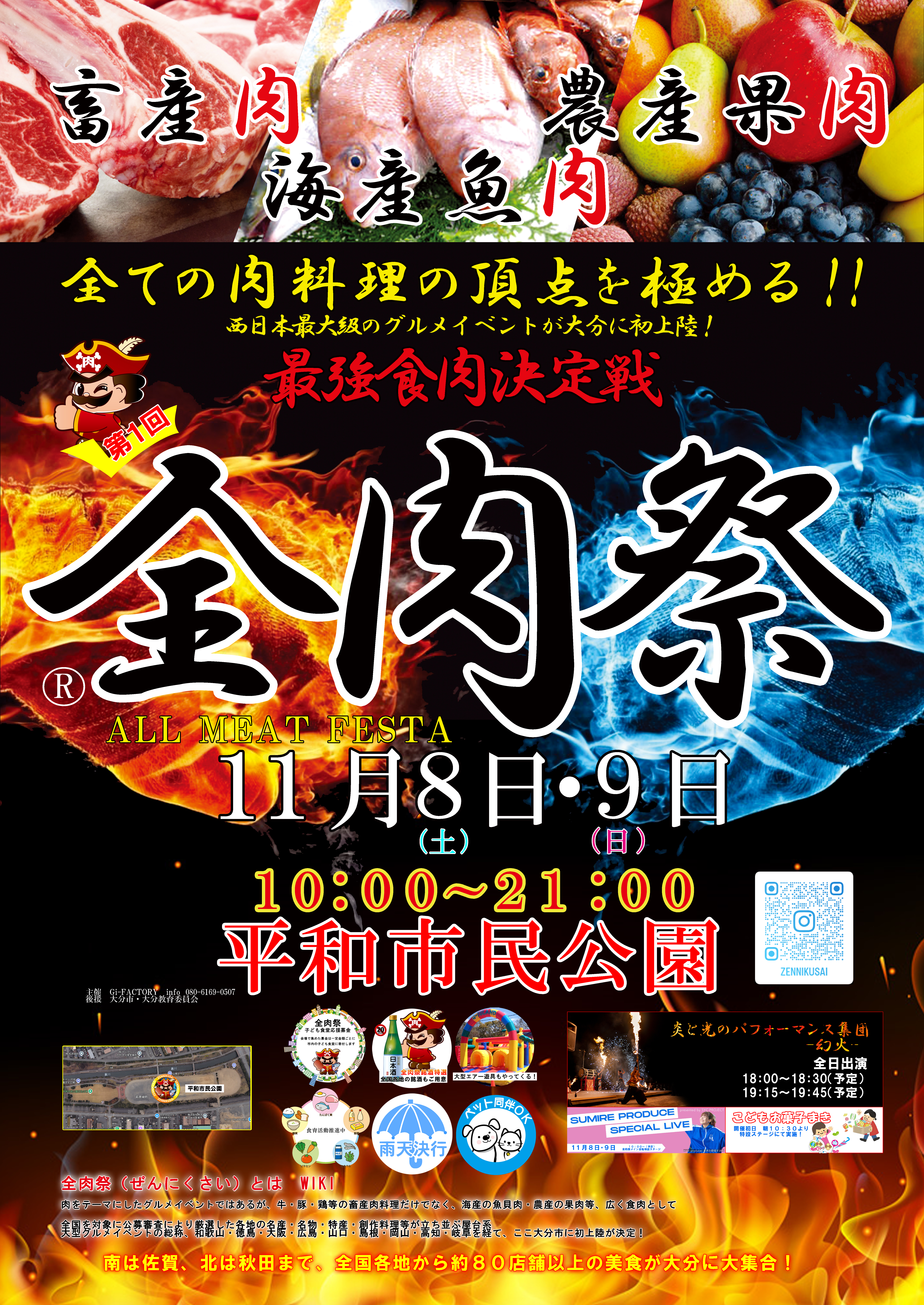 全国各地からあらゆる肉を集めたイベント【全肉祭】が平和市民公園にて開催されます。