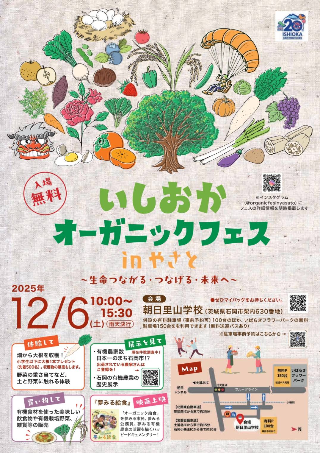 「いしおかオーガニックフェス in やさと」は、2025年3月に石岡市がオーガニックビレッジ宣言を行ったこともあり、この地をもっと知ってもらいたいと集まった有志で開催する手作りのフェスです。