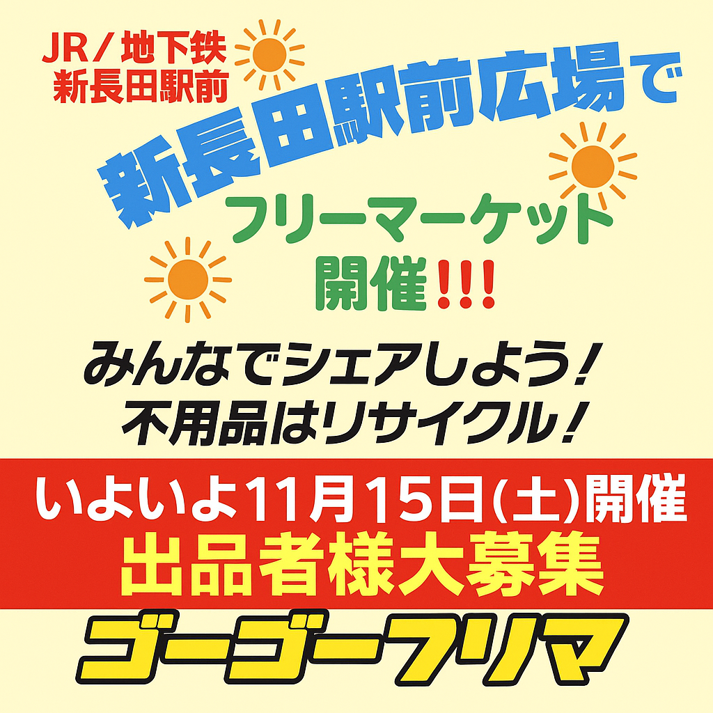 11月15日(土)10:00〜16:00、新長田駅前広場にてフリーマーケットを開催します!