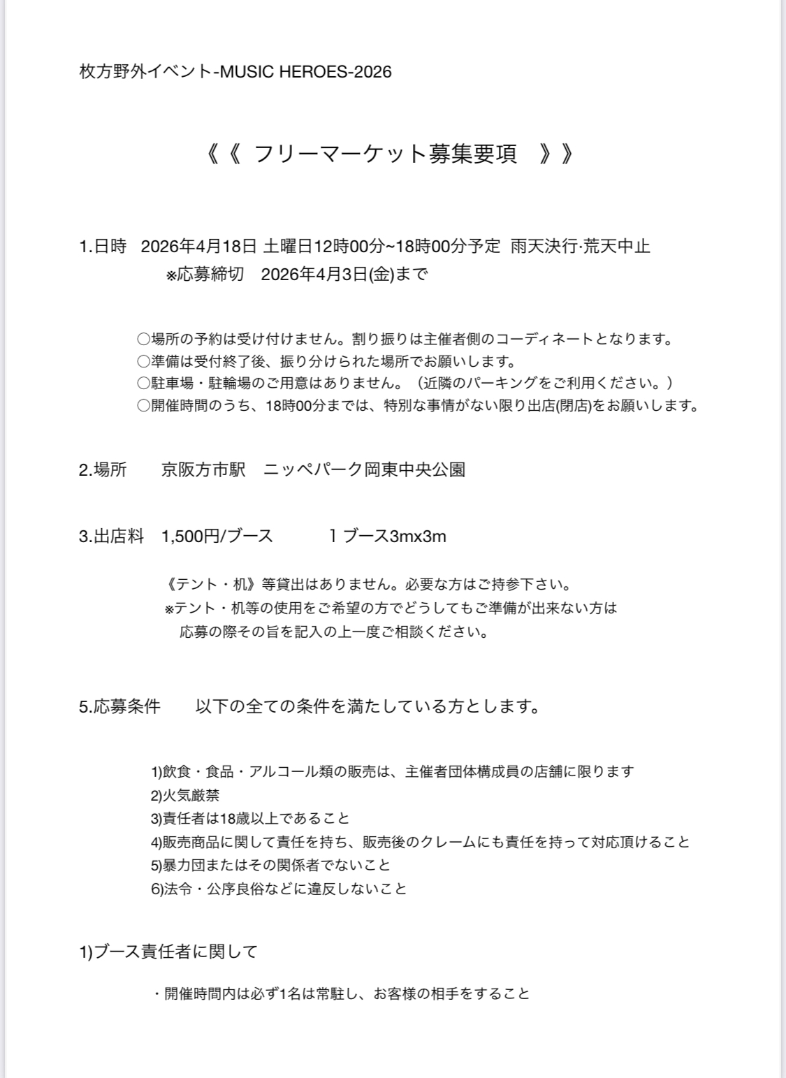 《アコースティック野外音楽イベントMUSIC HEROES》 2026!『音楽があなたのきっかけに』 私たちの音楽があなたの一歩踏み出すきっかけになれますように。色んな人を巻き込んだ野外イベントをお楽しみください!