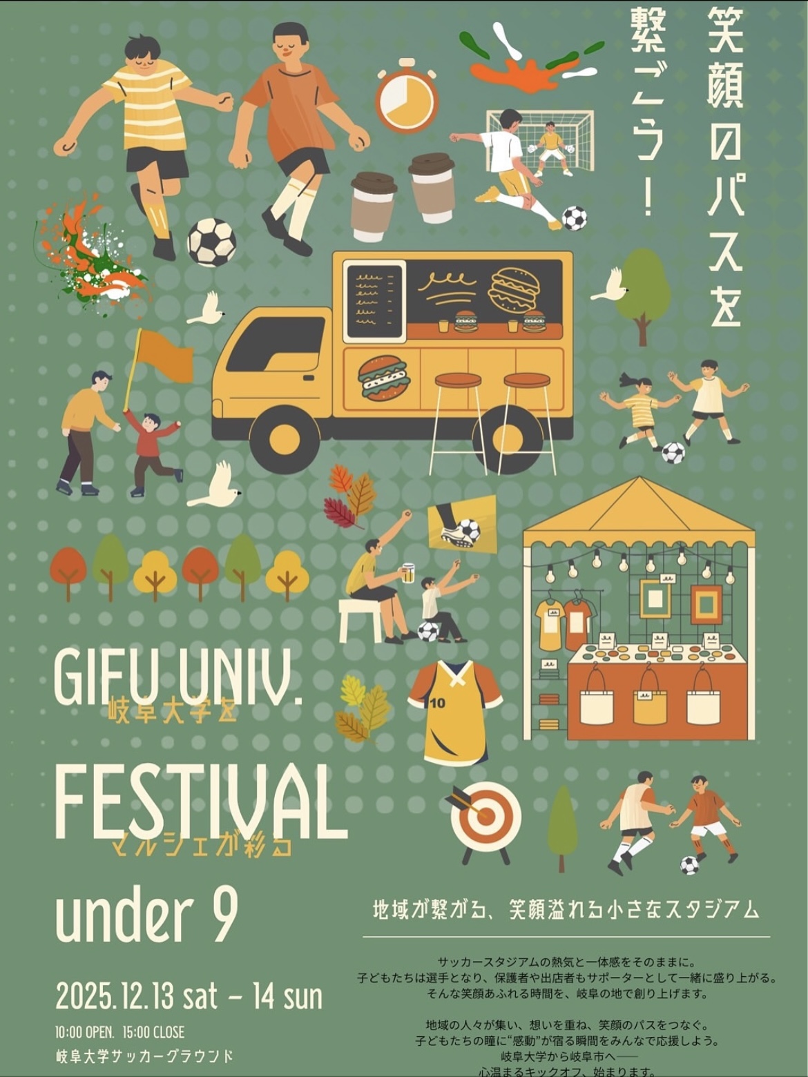 岐阜の未来である子ども達が感動する体験ができるよう、「子どものため」を思った人たちが集まり、笑顔のパスを繋げていくようなイベントにしたいと考えております。