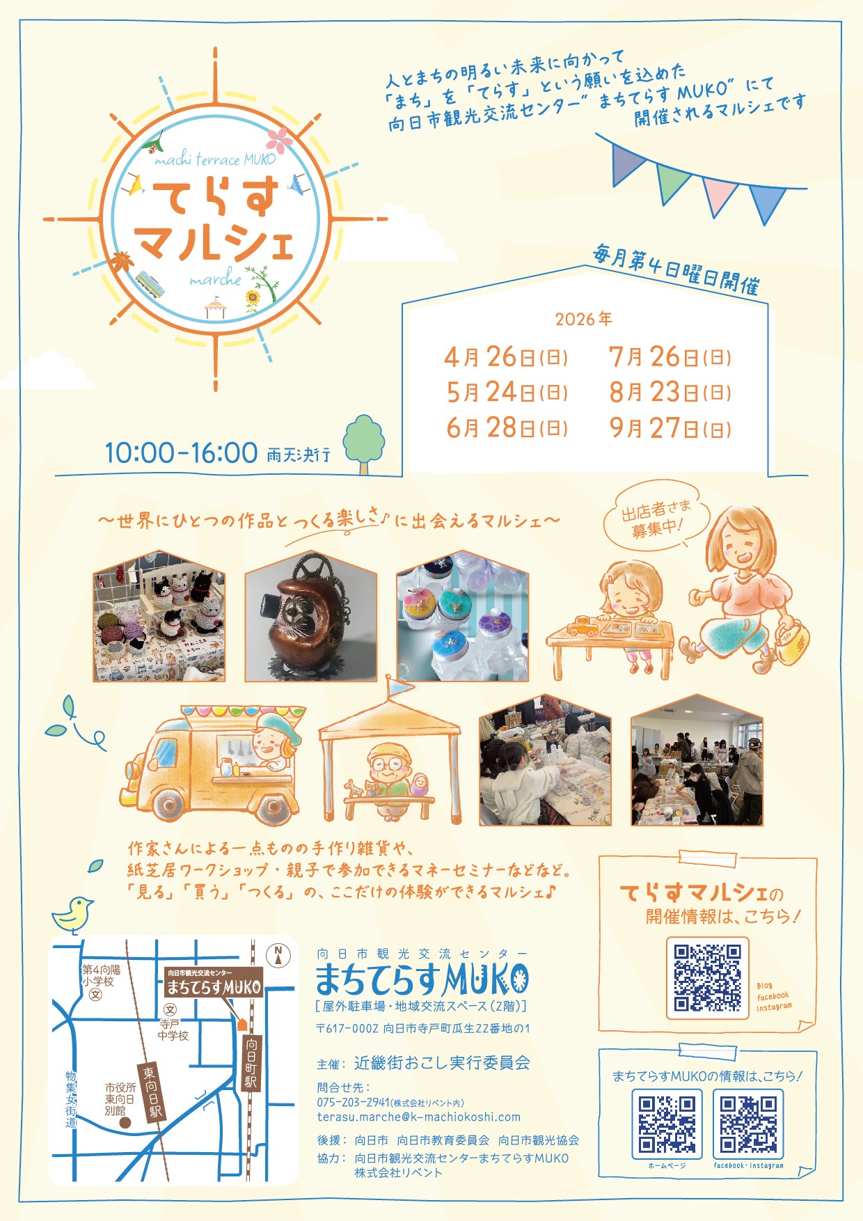 まちてらすMUKOを会場に、毎月第4日曜日開催の「てらすマルシェ」を、今年度も引き続き実施します。