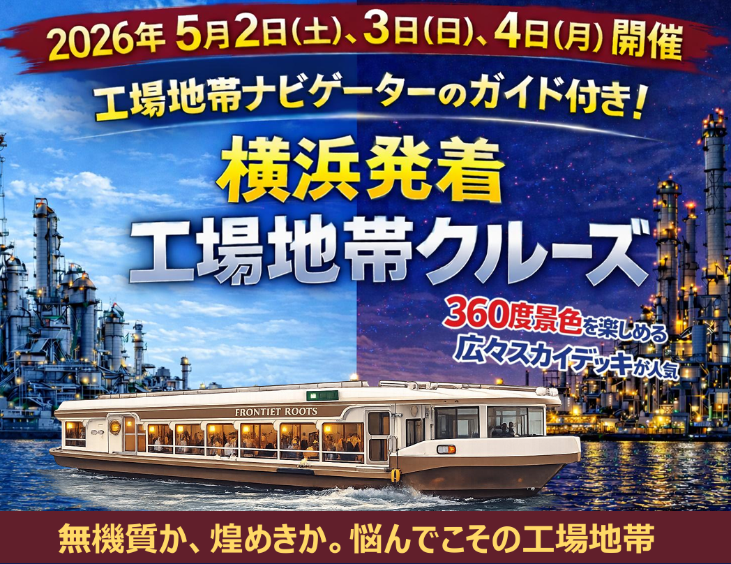 - 2026年5月2日(土)、3日(日)、4日(月) 横浜発着工場地帯クルーズ